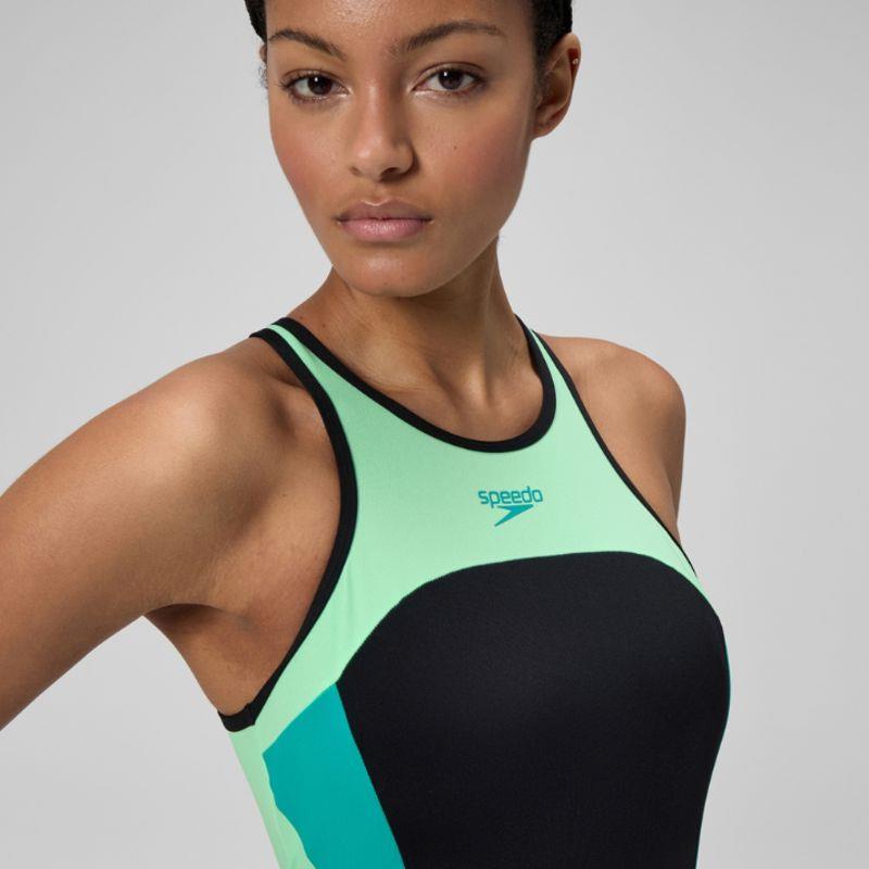Bañador para mujer SPEEDO PLACEMENT LANEBACK negro y verde 800535618666