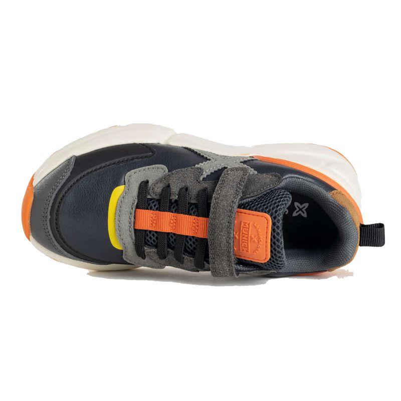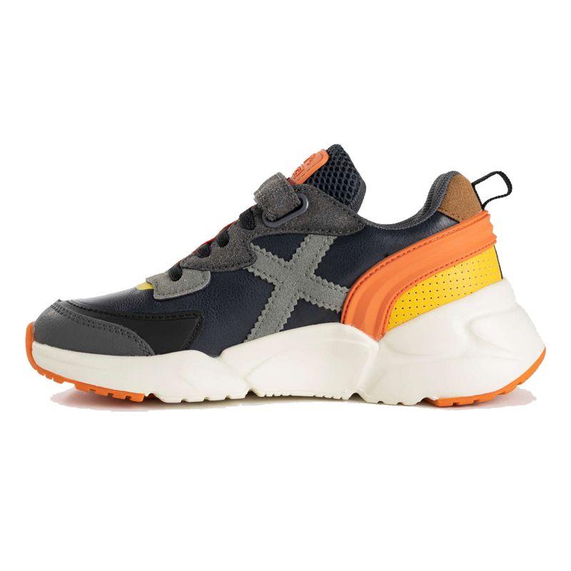 Zapatillas deportivas infantiles Munich en negro y gris con suela volumen.