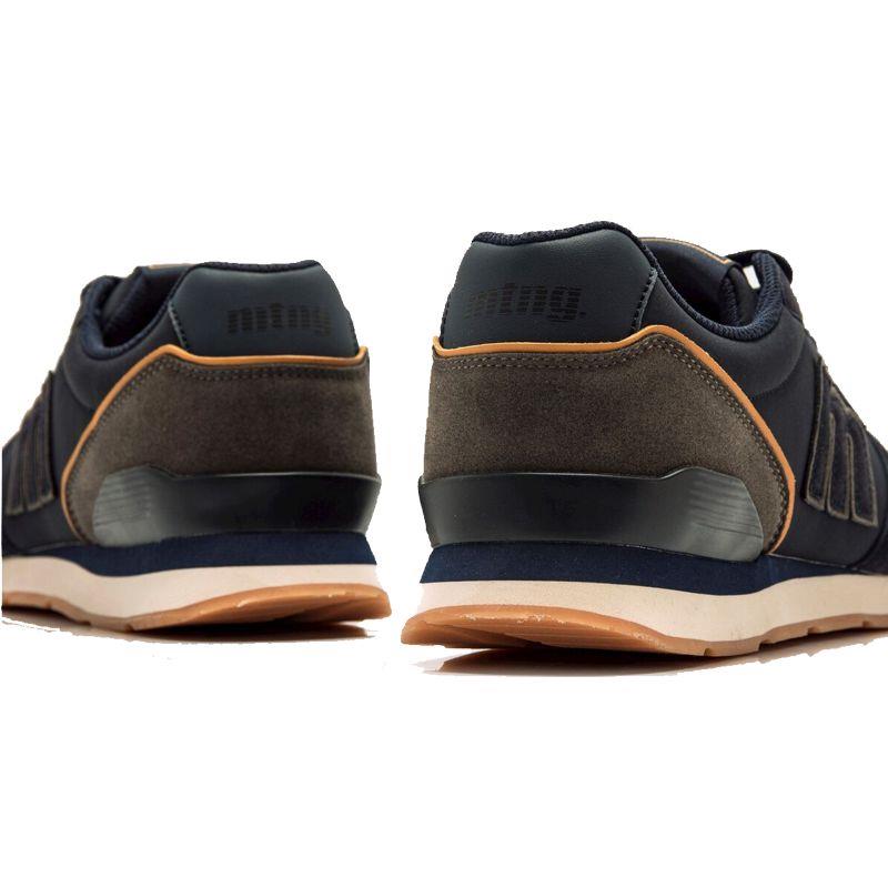 Zapatillas de color azul marino con detalles marrones para hombre de la marca Mustang, modelo Joggo Classic con un diseño deportivo.